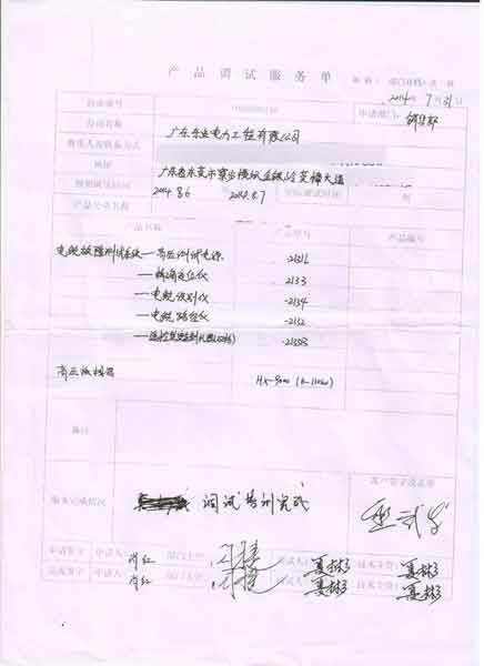 2014-08-17  廣東東安電力工程有限公司進(jìn)行調(diào)試服務(wù),調(diào)試產(chǎn)品:GD-2131L高壓測(cè)試電源 CY-2132電纜路徑儀  CY-2133精確定位儀  CY-2134電纜識(shí)別儀  CY-2135B遙控型高壓電纜安全刺扎器(雙槍)  CYHX-9000語(yǔ)言無(wú)線高壓核相器(6-220kV)